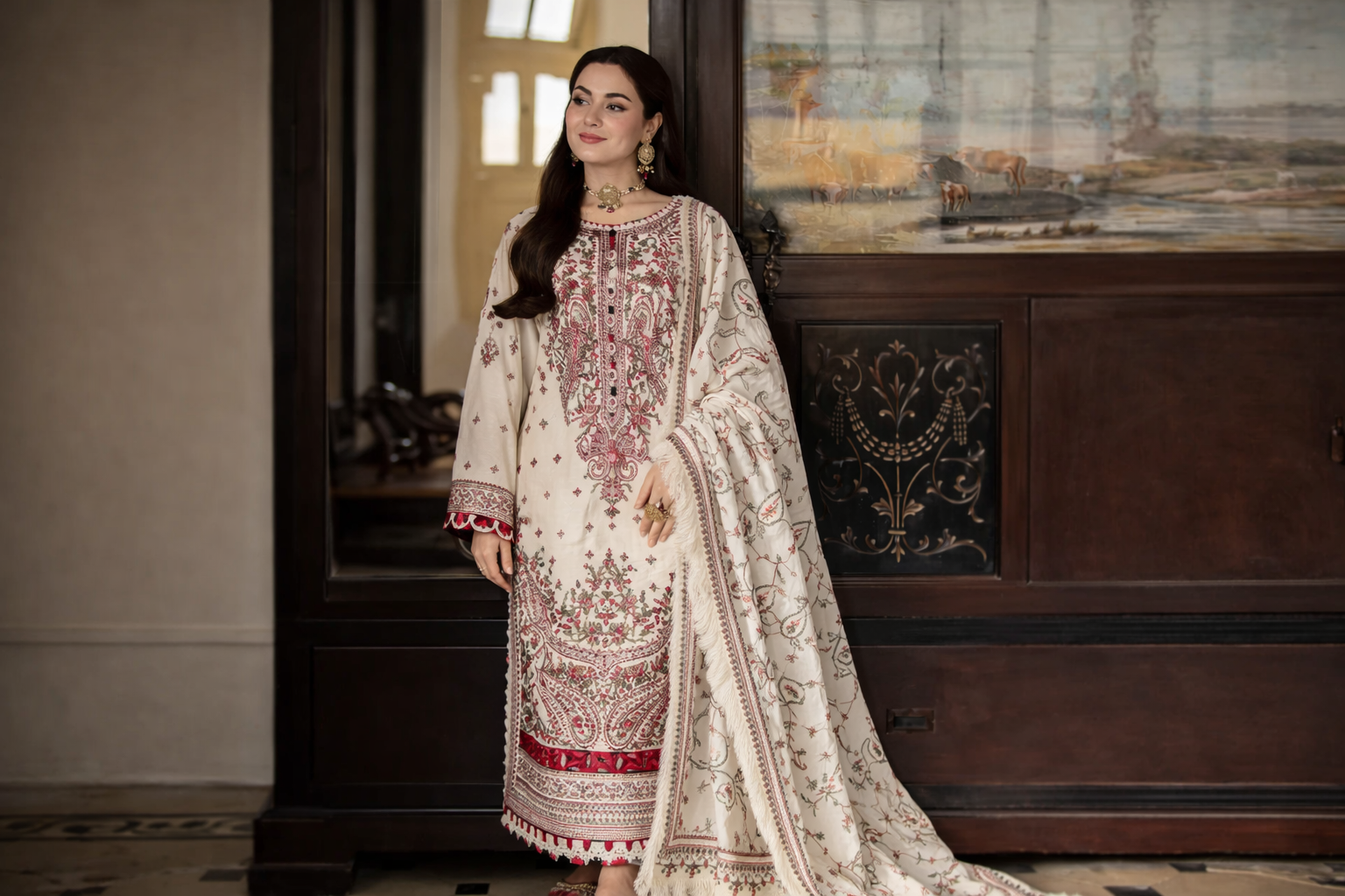 HS Collectionss Winter 3PC Dhanak Embroidered Suit – Shirt, Embroidered Shawl & Trouser | HSC-4352